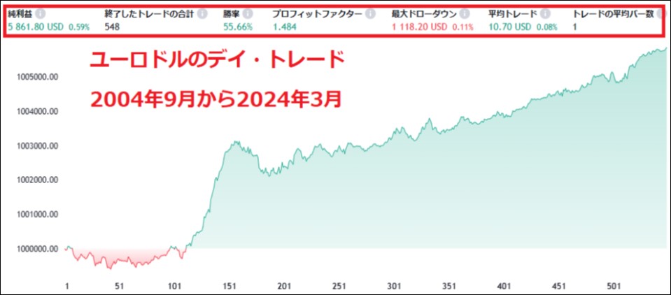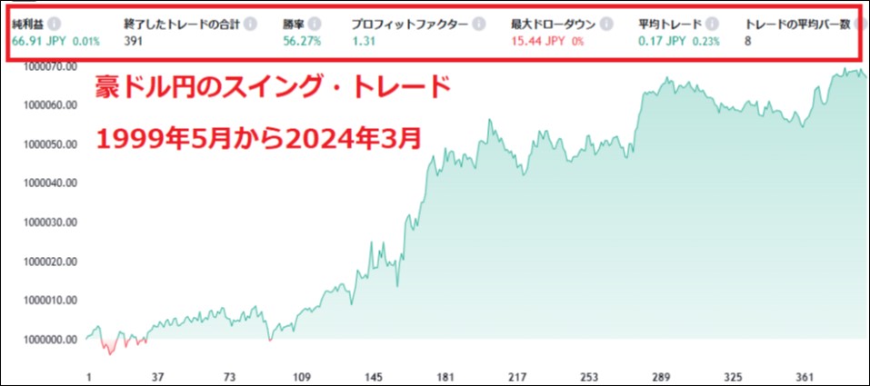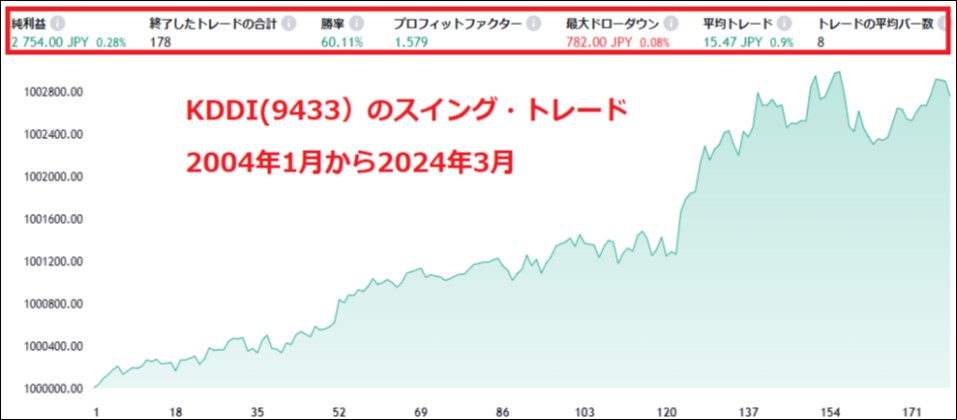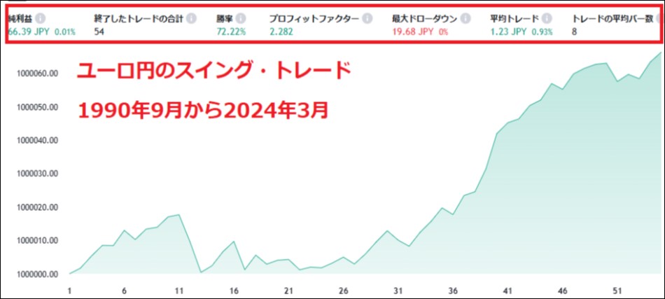 勝率 62.7%、PF (プロフィットファクター)1.68という結果です。