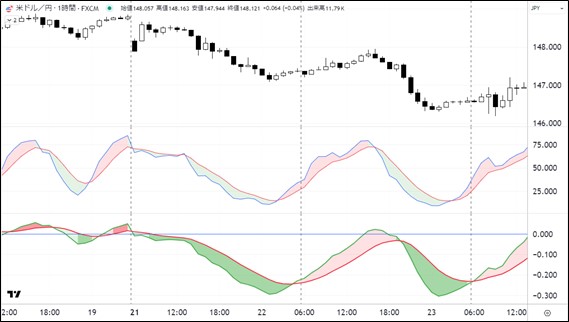 (2) DMA(ずらした移動平均線)「ずらした移動平均(Displaced Moving Average)」は、ディナポリ手法において方向性(トレンド判定)やクロス判断の中核をなす指標です。主に、日足、週足、月足などの長期のタイムフレームで利用されます。 図6 DMA(3) ディナポリ式ストキャスティックス通常のファストKストキャスティクスをベースに、2段階のスムージングを加えたディナポリ特有の構造。クロスの向きやタイミングを重視して、トレンド転換の初動を捉えるサポートを行います。 (4) ディナポリ式MACD一般的なMACDとは異なるオリジナルパラメータと平滑手法により、よりなめらかで先読みしやすいラインを表示。中期的なトレンド把握や、他のインジケーターとのコンビネーションによる方向性確認に役立ちます。 図7 ディナポリ式ストキャスティックス(上)とMACD(下)ディナポリ氏は、両インジケーターを短期トレードのトレンド判定に利用していますが、MACDはストキャスティックスよりも「長期」のトレンド、ストキャスティックスはMACDよりも「短期」のトレンドとして、利用しています。 (5) ダブルレポ(シグナル型戦略インジケーター1)DMA(3×3)の一方向スラスト(=連続した上昇または連続した下落)発生後の反転パターン(2度のDMAクロス)を捉え、逆張りのチャンスを示す戦略インジケーター。 図8 ダブルレポ・パターンラベル1はトレンド発生(ここでは上昇トレンド)を表します。ラベル2は押し、ラベル3は戻り、再度の下落でショート(ラベル売り)。これをDMA(3x3)を利用し判定します。 (6) シングルペネトレーション(シグナル型戦略インジケーター2)DMAを一度だけ抜けた後、フィボナッチの38.2〜61.8%押し/戻りから再反転する動きを狙う戦略。これもディナポリ氏が中核に据える戦略です。 図9 シングルペネトレーション・パターンラベル1はトレンド発生(ここでは上昇トレンド)を表します。これもDMA(3x3)を利用し判定します。ラベル2は押し、ラベル3はフィボナッチ38.2%から61.8%までの押し、再度の上昇でロング(ラベル買い)。 ▼解説動画▼![]() ![]() ![]() ![]() 導入・設定マニュアル全インジケーター、ストラテジーの解説・導入手順・設定方法・活用ポイントを丁寧に解説。 なぜ TradingView なのか?これまで受講者が自分の取引環境で戦略を自由に再現・応用することが難しいという課題がありました。また、使用するチャートソフトや価格データの制約、市場の種類、時間軸の固定などにより、戦略の真価を実感しきれないまま終わってしまうケースも少なくありませんでした。 TradingViewのメリット✅ 導入が簡単:Webブラウザからすぐに利用可能。インストール不要で今すぐ始められます。 書籍で学んだ戦略を、自分の市場・自分のスタイルで動かす。 よくある質問(Q&A)Q:TradingView の有料プランが必要ですか? Q:どのくらいの頻度でツールは追加されますか? Q:Pine Scriptの知識は必要ですか? Q:どのような人におすすめですか?